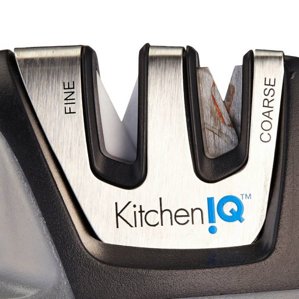 - Patented Edge Grip feature allows sharpening on the edge of the table or counter top- prevents the tip of larger knives from dragging over the surface of the counter